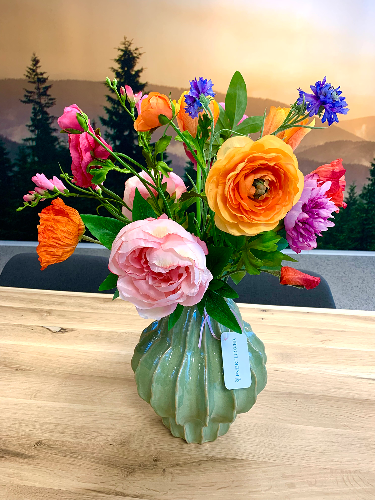 EverFlower’s missie is vreugde brengen aan onze klanten door het creëren kleurrijke en stijlvolle boeketten en decoraties van kunstbloemen en kunstplanten voor kantoren, woningen, winkels en evenementen.